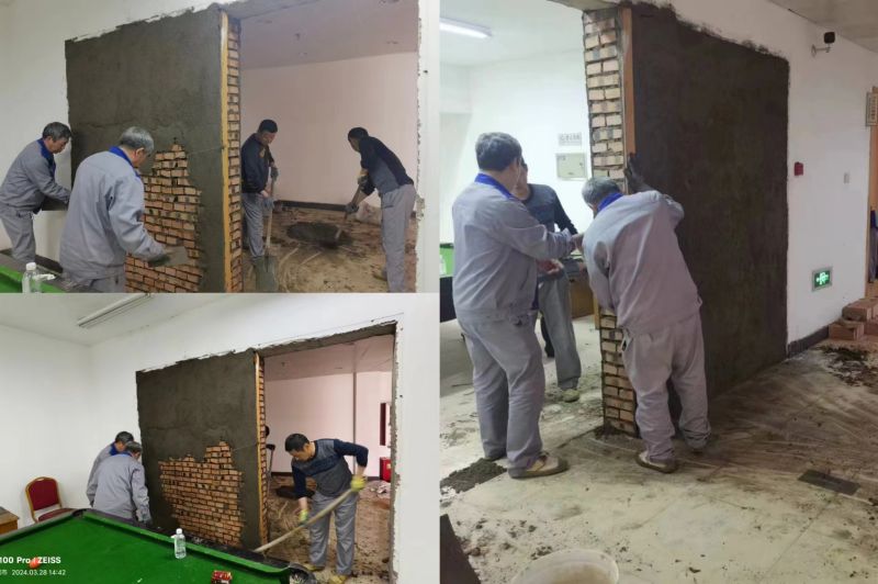 新辦公區(qū)分布在體育館主館1—3層,各樓層建筑結(jié)構(gòu)、房間戶型、施工方案均不同,在時間緊、任務(wù)重的情況下,工程維修負(fù)責(zé)人第一時間召集相關(guān)責(zé)任主體對施工方案進(jìn)行全面細(xì)致地評估研判,在做好深化圖紙、確定施工投入材料及工藝效果、落實分項施工方案及技術(shù)措施保障等籌備工作的基礎(chǔ)上,確保人員及作業(yè)環(huán)境安全的前提下,組織工程人員6名、歷時5天,拆除廢棄配電柜,壘砌磚墻,刮膩噴漆,改造電路,鋪設(shè)空調(diào)電纜及排水管路,共裝修改造辦公用房11間;該工程若外包費用約8萬元,自行修繕改造費用僅約5萬,節(jié)省約3萬元、節(jié)省比率達(dá)到37.5%。華強(qiáng)資產(chǎn)公司以“能自主維修絕不外委”的工作理念,節(jié)支降耗,改善環(huán)境。