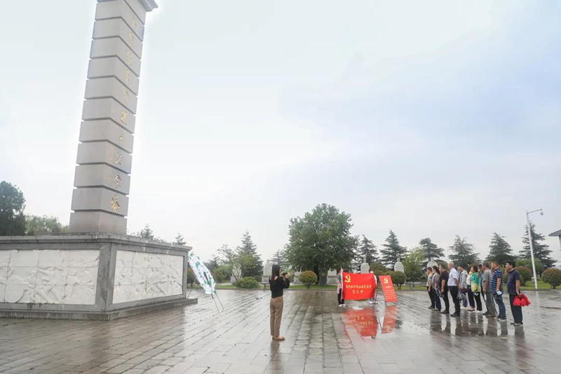 小窯頭烈士陵園凸顯抗戰(zhàn)主題,弘揚(yáng)愛(ài)國(guó)精神,養(yǎng)育英雄情懷,19.37米的革命烈士紀(jì)念塔矗立在中央廣場(chǎng),紀(jì)念塔上“小窯頭革命烈士紀(jì)念塔”十個(gè)鎏金大字,金光閃閃,振奮人心?;顒?dòng)中,全體黨員共同瞻仰了英雄石、英烈碑、抗日亭、烈士紀(jì)念館等,聆聽(tīng)了關(guān)于“火雞陣”“臭狗陣”等抗戰(zhàn)歷史中發(fā)生在小窯頭地區(qū)的著名戰(zhàn)役。隨后,大家緊握右拳,重溫入黨誓詞,緬懷了英勇奮戰(zhàn)犧牲的革命先烈。