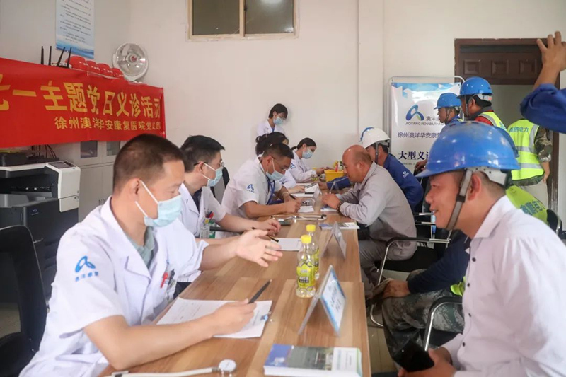 徐州澳洋華安康復(fù)醫(yī)院的醫(yī)務(wù)人員深入項(xiàng)目建設(shè)現(xiàn)場(chǎng),為奮戰(zhàn)在建設(shè)一線的施工及管理人員開(kāi)展義診活動(dòng)?;顒?dòng)中,醫(yī)療專(zhuān)家和醫(yī)護(hù)團(tuán)隊(duì)細(xì)心嚴(yán)謹(jǐn)為每一位一線工人進(jìn)行血壓血糖檢測(cè)、用藥指導(dǎo)、身心健康問(wèn)題解答等。本次義診活動(dòng)現(xiàn)場(chǎng)氣氛和諧融洽,讓項(xiàng)目全體員工深切感受到了黨組織的溫暖和關(guān)懷。