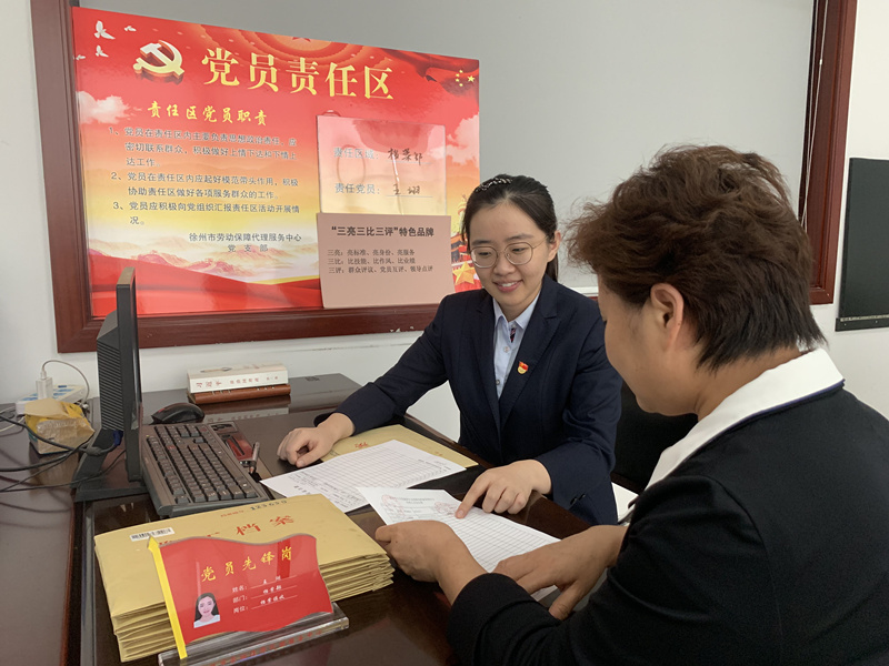 勞代支部根據(jù)工作實(shí)際,設(shè)立兩個(gè)黨員責(zé)任區(qū),分別為大廳服務(wù)區(qū)和檔案管理區(qū)。責(zé)任區(qū)內(nèi),做到“三亮”:第一,亮標(biāo)準(zhǔn)。區(qū)域內(nèi)懸掛“首問責(zé)任制”“一次性告知制”“限時(shí)辦結(jié)制”“服務(wù)承諾制”等相關(guān)業(yè)務(wù)辦理制度標(biāo)準(zhǔn)。第二,亮身份。黨員上崗一律主動(dòng)佩戴黨徽,設(shè)置黨員先鋒崗,勇于公開黨員信息和照片,亮出黨員身份,主動(dòng)接受群眾監(jiān)督。第三,亮承諾。在崗位顯著位置向辦事群眾公開黨員承諾內(nèi)容和黨員職責(zé),激勵(lì)黨員同志立足本職崗位做貢獻(xiàn),踐行黨員承諾。