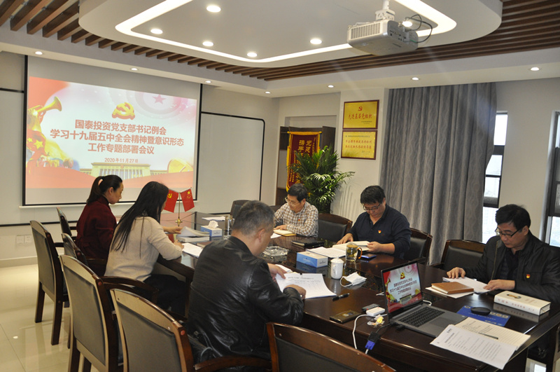 為全面貫徹中國共產(chǎn)黨第十九屆中央委員會第五次全體會議精神,落實(shí)李曉東同志在集團(tuán)公司黨委意識形態(tài)工作專題會議上的講話精神,近日,國泰投資黨總支召開學(xué)習(xí)十九屆五中全會精神暨意識形態(tài)工作專題部署會議,進(jìn)一步強(qiáng)化意識形態(tài)工作責(zé)任,推動意識形態(tài)工作扎實(shí)開展。會議由國泰投資黨總支書記霍凱主持,各直屬黨支部書記參加。