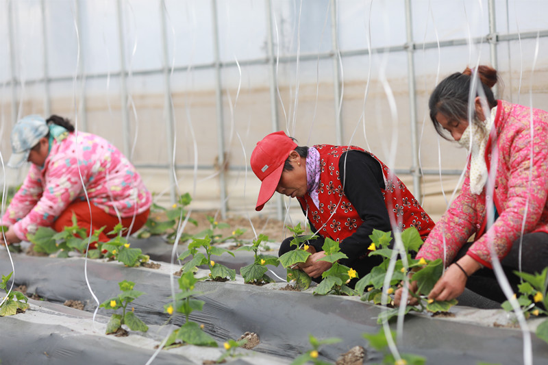 國投環(huán)能公司所屬宿州協(xié)鑫“農(nóng)光互補”項目建設(shè)前,周邊青壯年以外出務(wù)工為主,年紀稍大的則在家種植小麥、玉米,每畝年收入1500元。項目建成后,該項目一方面以支付土地租金的形式讓村民直接受益,另一方面通過返租土地、勞務(wù)用工的方式為當?shù)卮迕裉峁┝舜罅烤蜆I(yè)機會,吸引了一部分村民回家就業(yè),并帶動了周邊100多戶村民發(fā)展立體化農(nóng)業(yè)。光伏土地與大棚優(yōu)先返租給當?shù)赜袑嵙?、有?jīng)驗的種植大戶承包經(jīng)營,并鼓勵他們招聘人員時優(yōu)先選擇當?shù)刎毨Т迕瘛?