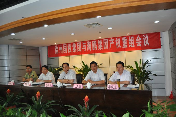 7月8日下午,徐州國投集團(tuán)與海鷗集團(tuán)產(chǎn)權(quán)重組會議在集團(tuán)公司12樓會議室隆重召開。市國資委黨委書記、主任劉新川、市國資委黨委委員、副主任王大勇、集團(tuán)公司黨委書記、董事長李修明及領(lǐng)導(dǎo)班子成員、海鷗集團(tuán)主要負(fù)責(zé)人梁如意等相關(guān)領(lǐng)導(dǎo)出席了會議。會議由集團(tuán)公司黨委副書記、總經(jīng)理李曉東主持。