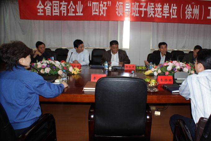 2011年9月21日上午,以省蘇豪集團(tuán)黨委副書記、紀(jì)委書記劉顯豪為組長(zhǎng)的省“四好”領(lǐng)導(dǎo)班子考核小組第四組一行4人來到徐州,對(duì)徐工集團(tuán)、國投集團(tuán)等全省國有企業(yè) “四好”領(lǐng)導(dǎo)班子候選單位進(jìn)行檢查考評(píng)。市委組織部副部長(zhǎng)杜慶琦、干部四處處長(zhǎng)張小件,市國資委副書記、副主任孫惠風(fēng)參加會(huì)議并聽取匯報(bào)。