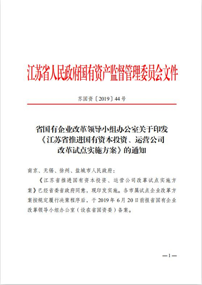 5.4月25日,省國(guó)有企業(yè)改革領(lǐng)導(dǎo)小組辦公室印發(fā)《江蘇省推進(jìn)國(guó)有資本投資、運(yùn)營(yíng)公司改革試點(diǎn)實(shí)施方案》,徐州國(guó)投集團(tuán)被確定為江蘇省首批國(guó)有資本投資公司試點(diǎn)企業(yè)。