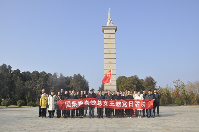 為進(jìn)一步學(xué)習(xí)貫徹黨的十九大及十九屆四中全會精神,貫徹落實習(xí)近平新時代中國特色社會主義思想,圍繞“不忘初心、牢記使命”工作部署,12月24日上午,國泰投資黨總支及各所屬黨支部赴集團(tuán)公司“愛國主義教育實踐基地”——新沂市小窯頭烈士陵園開展“緬懷英烈明愛國初心,學(xué)深黨史擔(dān)強(qiáng)企使命”主題黨日活動。黨總支及所屬支部全體黨員、積極分子及中層以上非黨員干部參加活動。