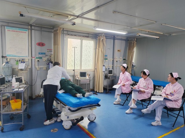 不同于單項(xiàng)技能比武,本次OSCE考核最大的特點(diǎn)是高度模擬臨床真實(shí)情境,強(qiáng)調(diào)工作的連貫性和應(yīng)急判斷能力??己朔譃槿?,環(huán)環(huán)相扣。第一站,護(hù)士化身為洞察入微的“偵察兵”,在有限時(shí)間內(nèi),面對由專業(yè)人員扮演的“標(biāo)準(zhǔn)化病人”,進(jìn)行詳細(xì)的病史采集和精準(zhǔn)的身體評估,此站考驗(yàn)了護(hù)士的溝通技巧和觀察能力;第二站,護(hù)士化身為精準(zhǔn)高效的“戰(zhàn)術(shù)家”,基于第一站的評估結(jié)果迅速提出核心護(hù)理問題,并立即采取相應(yīng)的護(hù)理措施;第三站,護(hù)士化身為沉著果敢的“突擊隊(duì)”,面對患者病情驟然惡化,第一時(shí)間識別危急值,果斷采取心肺復(fù)蘇、急救用藥等緊急救治措施。這一站是考核的重中之重,直接檢驗(yàn)護(hù)士在壓力下的心理素質(zhì)、快速反應(yīng)能力和搶救技能。